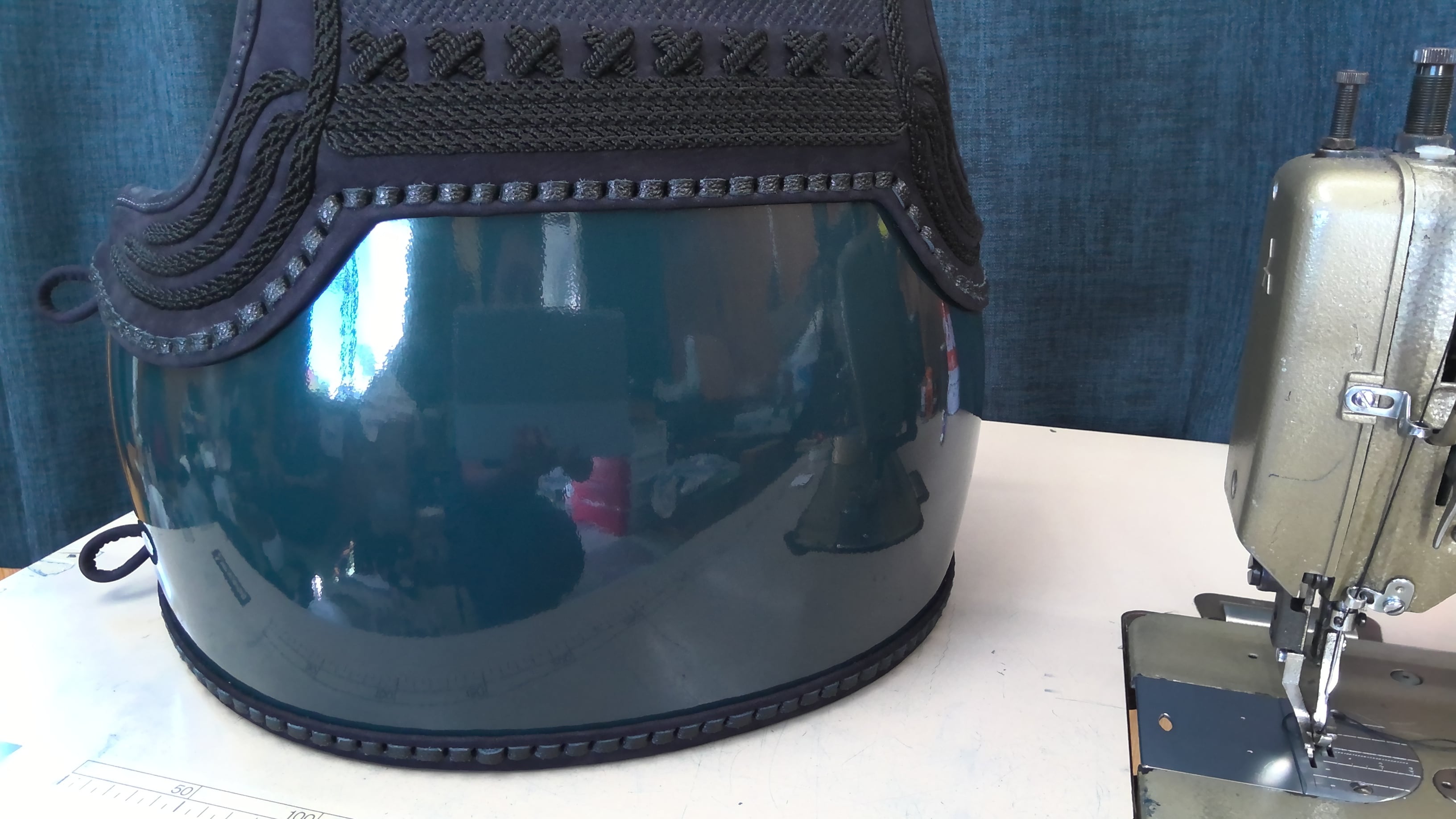 胸牛紺革 バッテン飾り入り濃紺斜め刺し