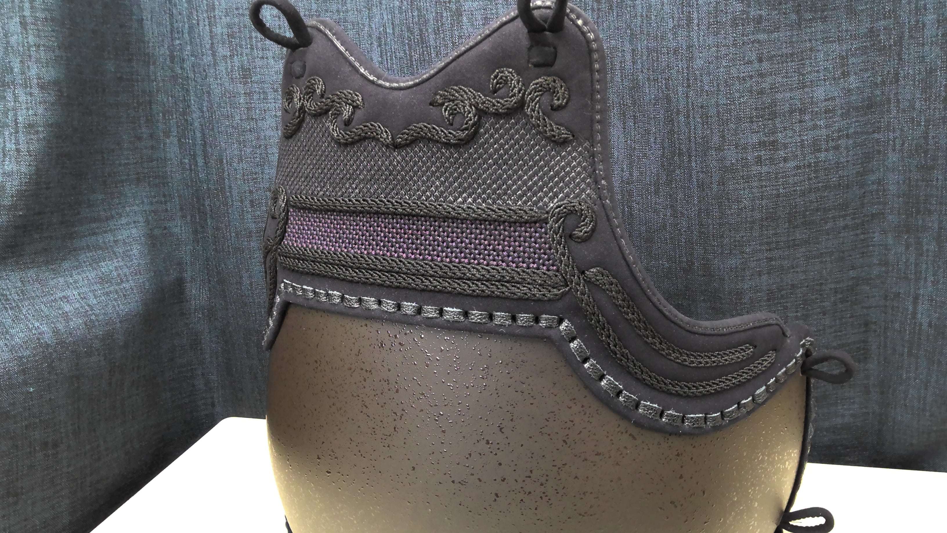胸は紺人工皮革で落ち着いた雰囲気に。